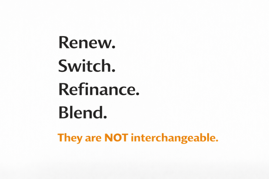 Because renew, switch, refinance, and blend are not interchangeable — and understanding the difference is where smart mortgage planning begins.